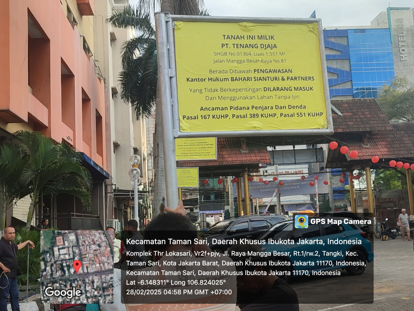 JAKARTA |Infomedia Nusantara– Selasa (18/03/2025). Sebuah kasus penyalahgunaan lahan yang terjadi selama tiga dekade kini mencuat ke permukaan di wilayah Provinsi DKI Jakarta. PT. Tenang Djaja, pemilik sah lahan seluas 1.551 meter persegi di Jalan Mangga Besar Raya No. 81, Jakarta Barat, mengungkapkan dugaan penyalahgunaan serius oleh oknum Pemprov DKI Jakarta. Lahan tersebut diduga telah disalahgunakan sejak tahun 1980-an, dengan alih fungsi menjadi kios dagang hingga lahan parkir tanpa izin dari pemiliknya.