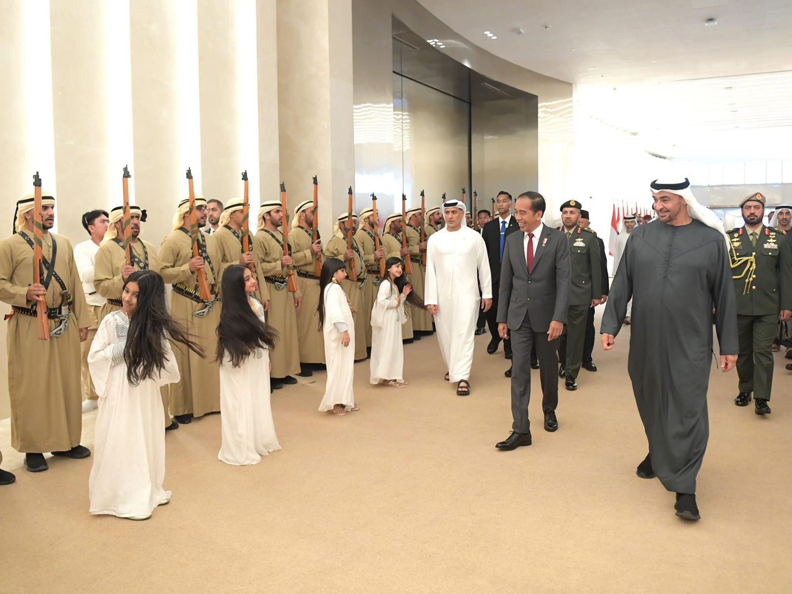 Saat MBZ berkunjung ke Indonesia pada Rabu, (24/07/2019) silam, Presiden Jokowi juga menyambut langsung kedatangannya di Bandara Internasional Soekarno-Hatta. Saat itu, MBZ masih berstatus sebagai Putra Mahkota Abu Dhabi sekaligus Wakil Panglima Tertinggi Angkatan Bersenjata PEA.
